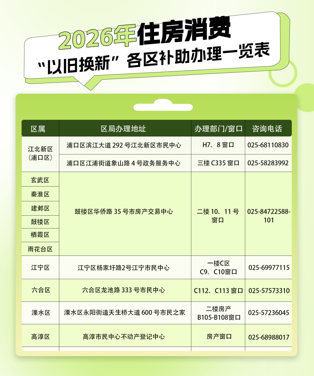 答:您可关注“南京房产微政务”微信公众号,各区具体的申领地址和联系电话见下表。(来源:南京房产微政务)