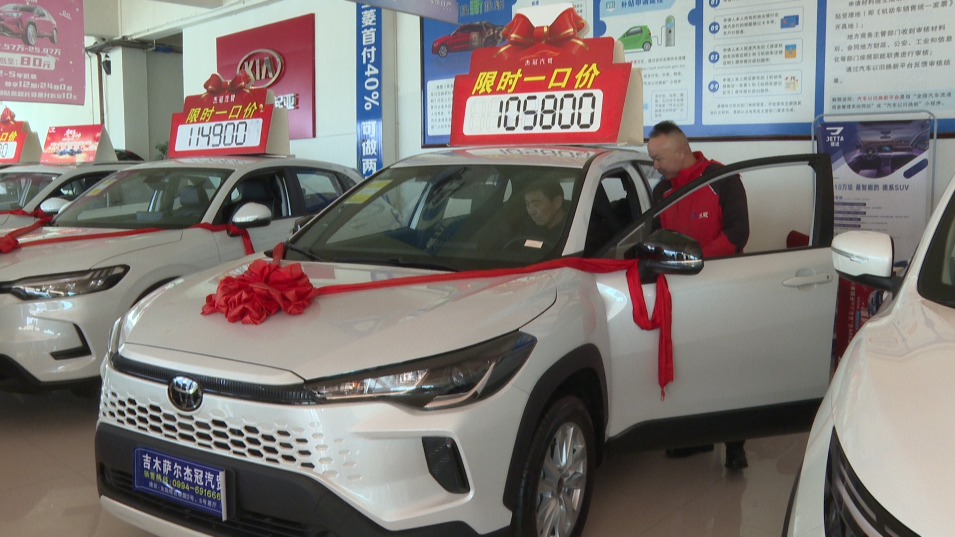 吉木萨尔县居民王迎春购车后说:“我今天选购的这款车,指导价是109800元,参加完国家以旧换新补贴、厂家补贴,价格特别划算,给我们老百姓省了不少钱!”
