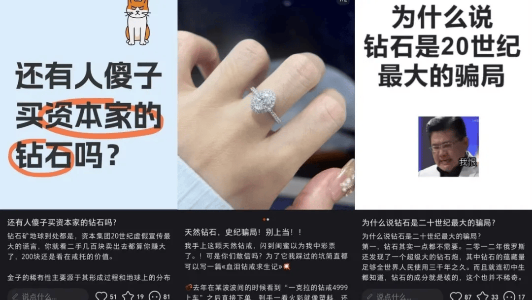 从“钻石恒久远”的神话,到“降价卖不动”的难堪,消费者的理性选择正在不断冲刷着钻石的光环。对钻石“祛魅”的愈演愈烈,甚至催生了“钻石是不是营销骗局” 的集体质疑。