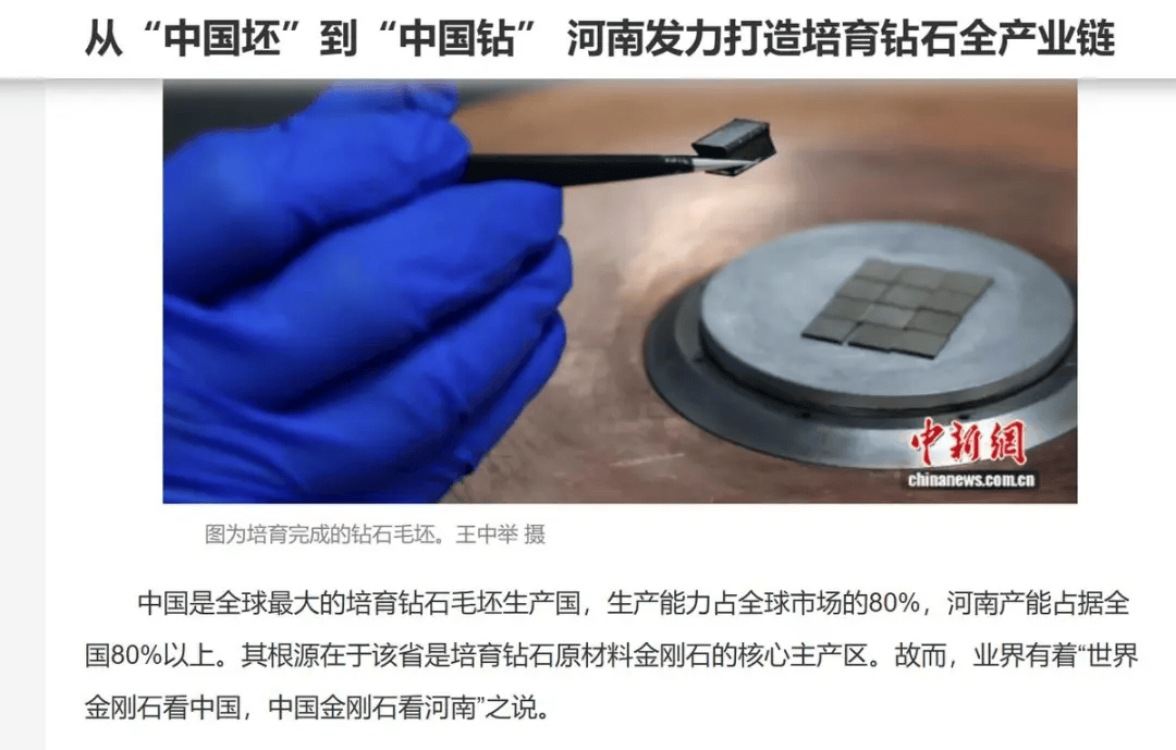 如今河南凭借成熟的工艺,已成为全球最大的培育钻石基地之一。这里出产全国80%的合成钻石,既能满足工业需求,也能实现“克拉自由”,快速切入珠宝市场。