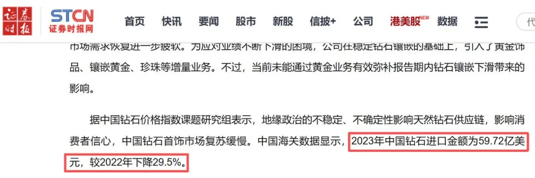 与之对应,海关公开口径显示,2023年中国钻石进口金额同比下降29.5%,天然钻的进口颓势已十分明显。bv1946伟德国际始于英国