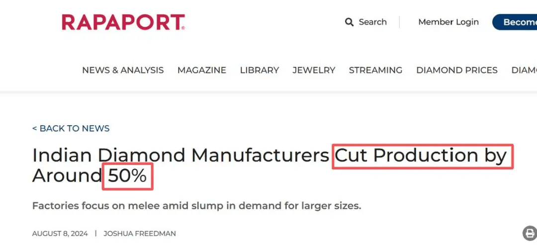 作为全球最大的钻石切割中心,印度承接了全球约九成的钻石加工业务,但2024年的行情也让这个中游大国举步维艰。