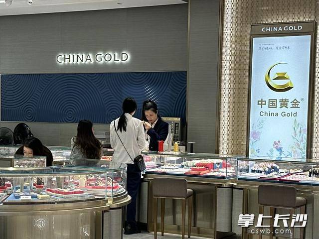 与周大福门店的冷清形成对比,同商场的中国黄金门店内人头攒动。柜台前,匡女士和陈女士正在仔细比对两个黄金吊坠手链。“这家买‘一口价’的黄金还能打8.8折,是我们逛下来价格比较合适的了。”匡女士说道,她选中了一款金莲花吊坠,搭配绿玛瑙珠,以折后1918元的价格成交。