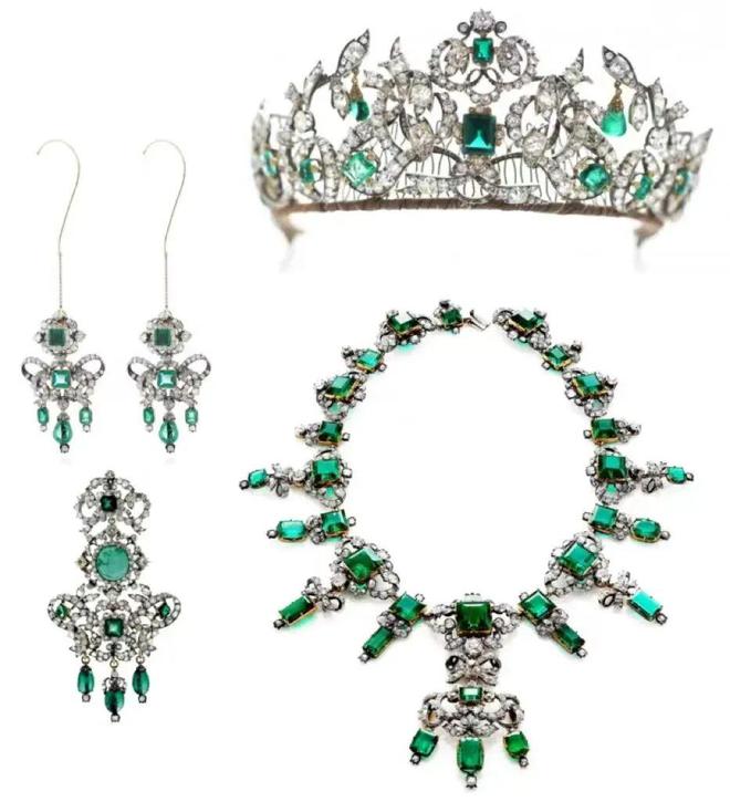在珠宝的世界中,没有什么比一整套匹配的Parure套装,更能彰显皇室的威严与奢华!