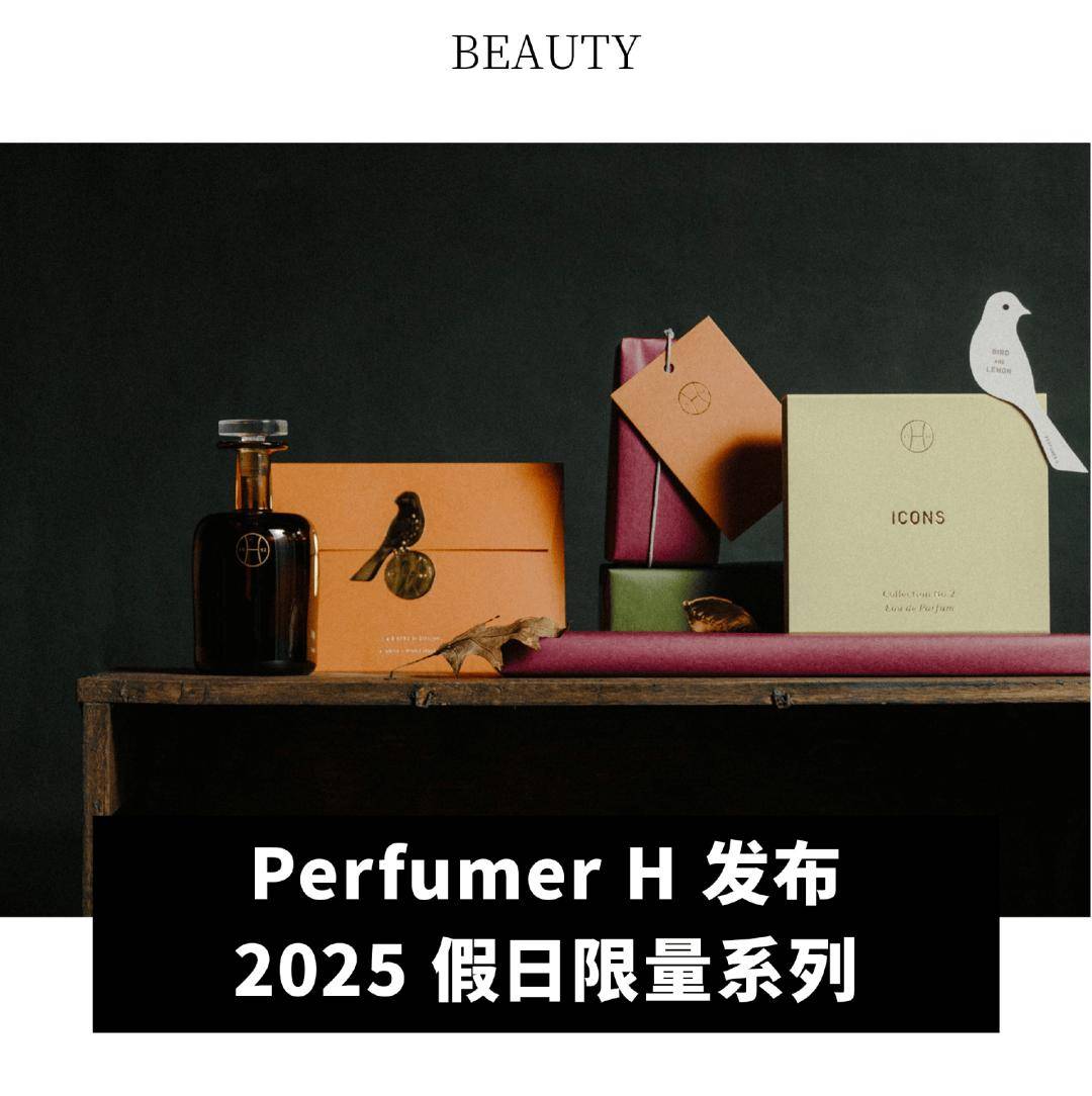 Perfumer H 发布2025 假日限量系列,该系列由品牌创始人、调香师 Lyn Harris 与英国肯特郡画家 Will Calver 联袂打造,基于对”减繁取精”理念的共识,他们共同完成了一组三联画和相应的嗅觉世界,一则关于感官的故事——邀请人们在这个节庆时节,开启感官漫游。系列包含三款香氛作品:玫瑰与昆虫、鸟和柠檬,以及林中烟影。Will Calver 的三联画呼应了香氛的结构:明亮的前调,渐次加深的中调,以及萦绕的尾调。每幅画都将荷兰静物画派的绘画语言凝练为独到的意象。