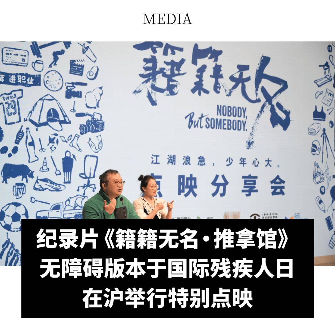 12 月 3 日,适逢第 34 个国际残疾人日,纪录片《籍籍无名》第三集《推拿馆》无障碍版本特别点映活动在上海徐家汇书院成功举办。此次活动由上海广播电视台真实传媒有限公司、上海广播电视台东方广播中心无障碍公益工作室联合主办,徐家汇书院协办,旨在通过无障碍观影的形式,让包括视障、听障人士在内的更多观众,平等感受纪录片的真实力量,共同探讨公共文化服务的包容性与可达性。
