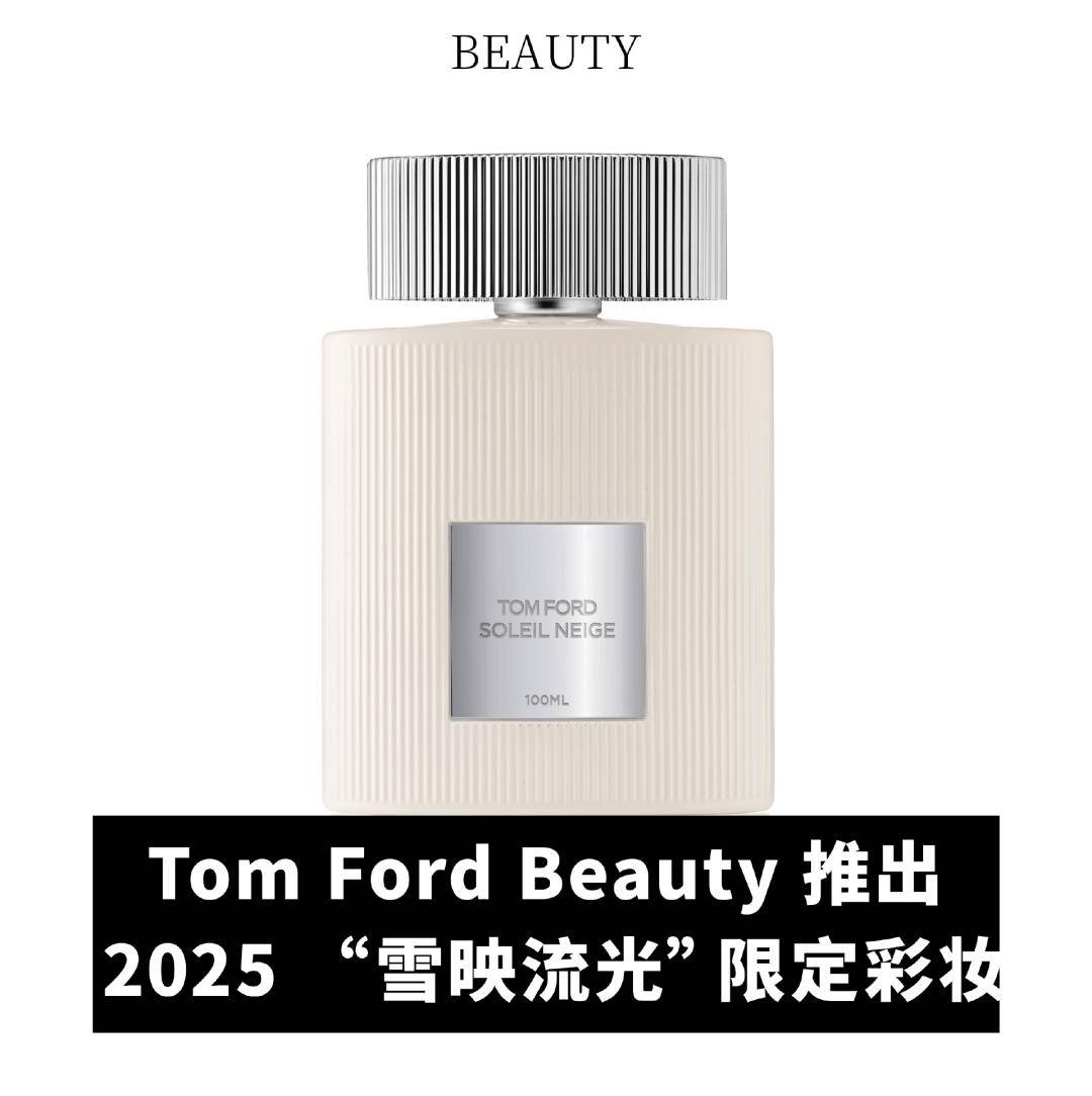Tom Ford Beauty 以法国阿尔斯山脉阳光映射下的雪为灵感,推出2025 “雪映流光”限定彩妆,其中包括细白管口红、四色眼影、腮红膏和妆前精华露。细白管口红采用限定银白配色,具有水润清透质地,含维生素E和洋甘菊花油。四色眼影采用蜜桃玫瑰色系,并带有大地色清透闪片。