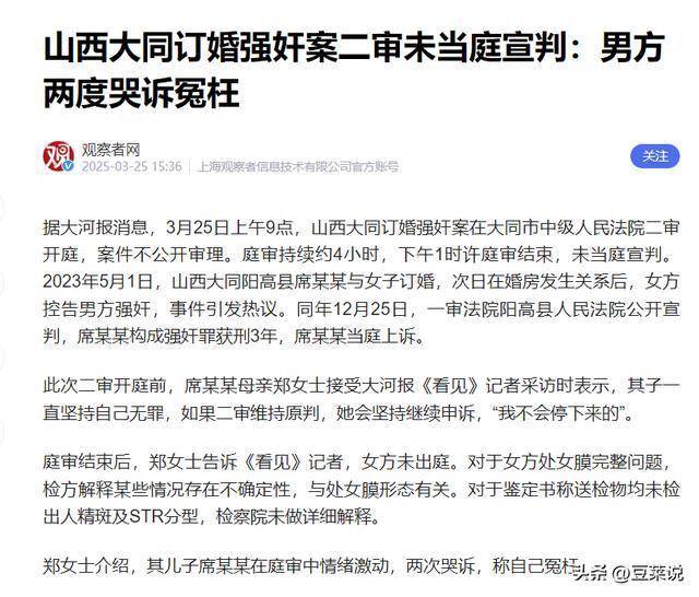 2023年12月25日,阳高县法院一审认定席某构成罪,判三年有期徒刑,席某当庭上诉,称两人是自愿的。
