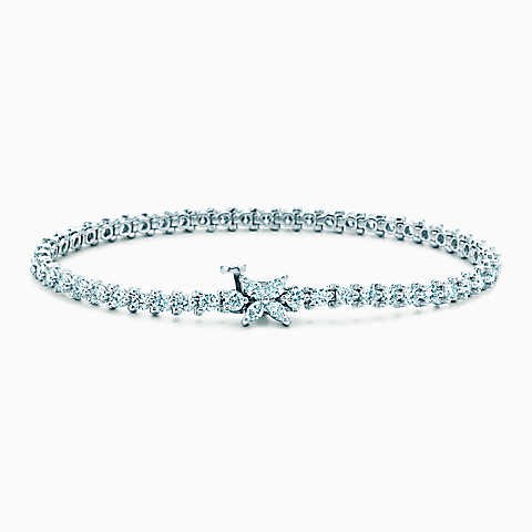 铂金镶嵌钻石;7英寸长;榄尖形切割钻石,总重0.18克拉;圆形明亮式切割钻石,总重2.90克拉